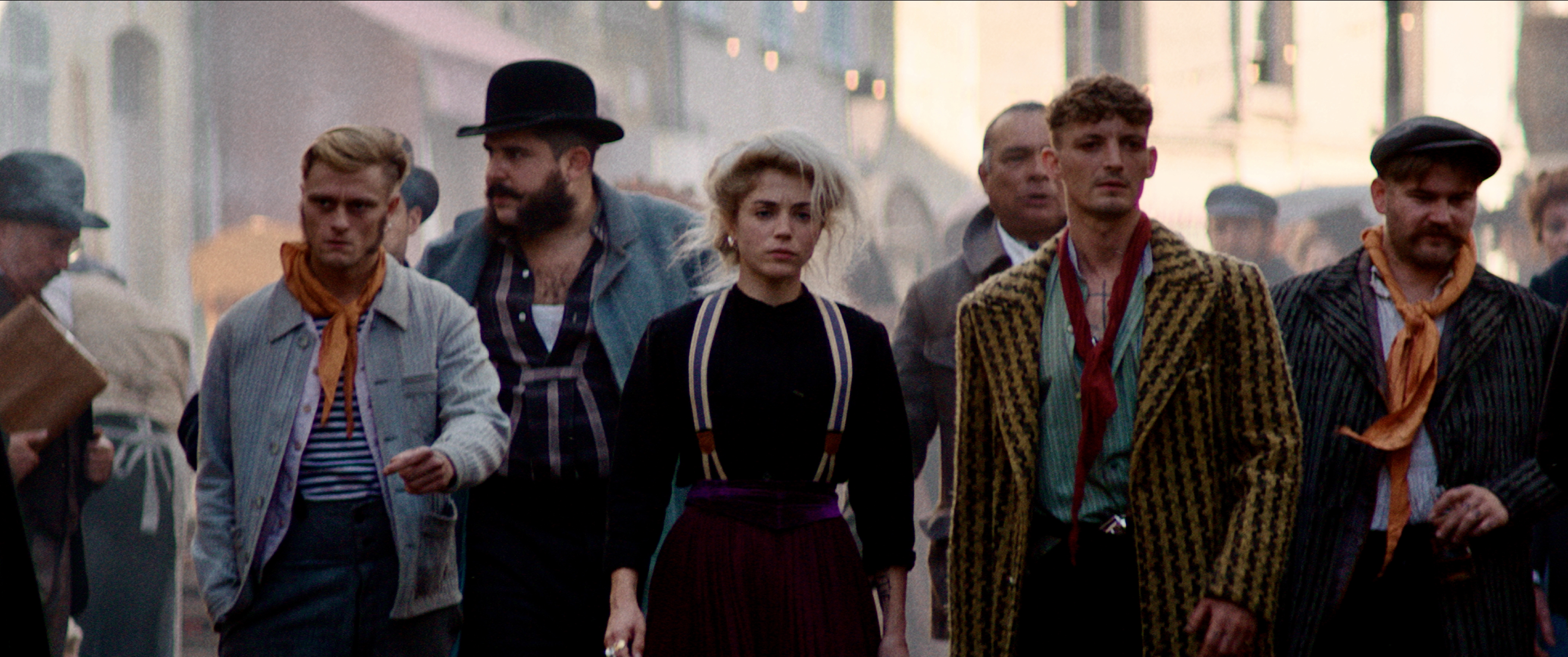 La séquence d’ouverture est étonnante : on s’attendait à découvrir la bande des apaches, ces bandits anarchistes de Belleville et on se trouve avec des ados qui dévalisent Sarah Bernard. En fait, on découvre les apaches depuis le point de vue d’une gamine des rues qui bosse pour eux. Mettre au centre du scénario une orpheline en marge c’est un peu surprenant. Même si le geste de mettre au premier plan une héroïne badass est grave à la mode, ça donne au film un côté intriguant.