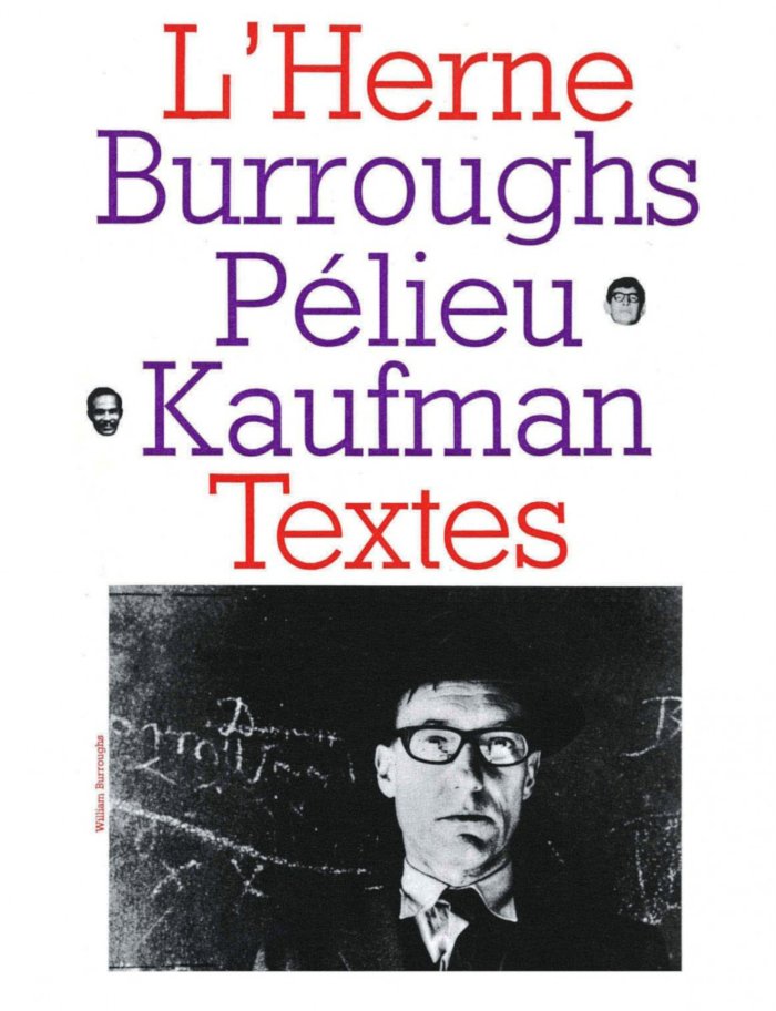 Cahier de l’Herne, William Burroughs, Claude Pelieu, Bob Kaufman–(direction Pierre Bernard, traduction Mary Beach et Claude Pelieu), 1967. Réédition Fayard, 1998, 46,80 €.