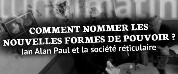 Depuis que le pouvoir existe, on a essayé de le nommer. L’enjeu est de taille. En effet, nous présupposons (à tort ou à raison) qu’il n’y a qu’en comprenant adéquatement ses logiques, ses mécanismes et ses représentations qu’il est possible de le combattre ou de l’esquiver. Nous héritons de toute une palette de concepts et de mots plus ou moins ronflants et accessibles : société de classe (Marx), du spectacle (Debord), de contrôle (Deleuze), on en passe et des moins bons. De fait, la société (ou ce qu’il en reste) évolue et la domination s’affine et se perfectionne (ou se brutalise), il est donc impératif de nommer aussi précisément ce par quoi nous sommes tenus ou écrasés. C’est ce que tente de faire Ian Alan Paul avec son livre La société réticulaire que nous avons traduit et publié en octobre dernier.