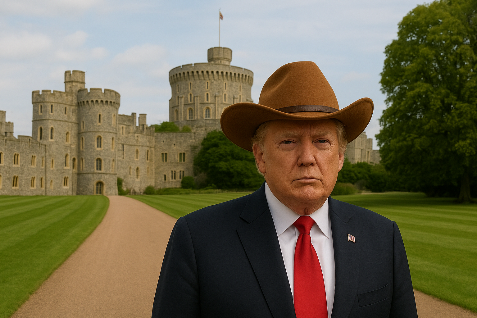 Revenons à Trump et aux évènements de ces derniers jours. La venue du président à Windsor ce 17 septembre incarne une certaine idée de l’afféterie royal(iste) combinée au grotesque du géant orange. La séquence vaut le détour pour les philistins férus de rituels de domination institutionnelle. D’un côté, le déploiement cérémonial very demure, very mindful de la clique anglaise et son programme alléchant : promenade en calèche dans les jardins de Windsor, banquet royal à rallonge, défilé aérien de la patrouille des Red Arrows, cérémonie militaire à base de fanfare, tambours et cornemuses… De l’autre, les inévitables militants anti-Trump, agitant frénétiquement leurs Union Jacks — ce tissu chamarré qui dispute sans rougir aux stars américaines le titre de drapeau le plus affligeant du kitsch impérial — s’érigent contre la visite du président américain. Ça change de la manif « anti-immigration » à laquelle la foule britannique s’est livrée les jours précédents (il est suffisamment rare que les cris se tournent vers le capitaine du naufrage plutôt que vers ceux qu’on jette à la mer). A Windsor, on reproche à Trump sa bromance avec l’immonde Esptein, dont le récit fut diffusé mardi soir sur l’une des façades du château. Les facétieux « Led By Donkeys » ont en effet projeté un montage de plusieurs minutes sur l’une des tours de la forteresse britannique. Il serait intéressant de comparer le trailer évoqué plus haut à cette vidéo pédagogique mettant en lumière les relations de Trump avec le défunt pédophile : images du « Taco » frétillant auprès de bimbos à Mar-a-lago, mention du bien nommé Lolita Express (nom du Boeing 727 utilisé par Epstein pour se rendre dans ses différentes propriétés), images de fêtes post-défilé de la marque de lingerie kitsch as fuck Victoria Secret, clichés de la villa de Palm Beach pour laquelle les deux ogres se sont battus puis brouillés…). Ce triste spectacle, que les badauds ne visualisent qu’à travers leurs smartphones braqués sur l’édifice, redouble l’effet médiatique de la venue du président à Windsor mais a le mérite de défendre autre chose que l’intérêt de deux États-Nations.