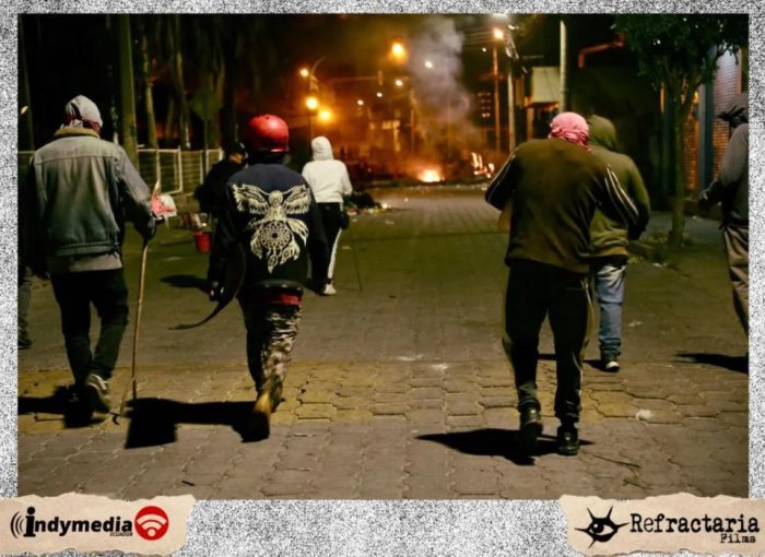 Et se sentir frères et sœurs pour se réaffirmer dans la nuit qui tombe, avec une forte incertitude parmi les gens, mais aussi avec une profonde conviction parmi tous.tes les présent.es. Les mères, les enfant.es, frères, compagnons, comuneros et comuneras avec leur dirigeant.es, s’opposant sur la décision de rester à l’arrivée du convoi militaire, ou de rester vigilant.es depuis les foyers. Cela paraîtrait être une décision de vie ou de mort, et cela pourrait bien l’être. Tout cela pendant que la barricade de protection continue de s’ériger de nouveau, comme chaque nuit, et chaque fois avec la terreur plus ancrée.