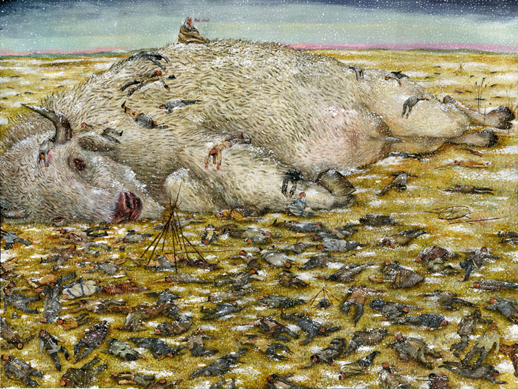 Effondrement écologique et restructuration politique en cours. – Hypothèse : la menace d’effondrement écologique et matérielle des soubassements de la civilisation humaine est ce qui sous-tend les restructurations politiques en cours. Autrement dit, nécro-police et nationalisme réactif sont deux aspects saillants d’une reconfiguration générale des États-nations menacés de disparition pour motifs écologiques. Cela ne remet pas en cause l’analyse en termes de race ou de racialisation, ni ne doit mener à sous-estimer la prégnance du ressentiment dans l’expression des votes qui ont mené au pouvoir des autocrates en Amérique du Nord et du Sud. Dans le cas des U.S.A., il est ainsi impossible de comprendre le vote Trump sans appréhender la situation des mâles blancs qui voient s’écrouler leur assise patriarcale et raciste, tentant désespérément de ralentir leur fin de course annoncée dans les poubelles de l’histoire. Mais les récents massacres à El Paso, en Californie, et en Nouvelle-Zélande, montrent que le nationalisme blanc anti-immigrants est réinterprété en termes d’environnementalisme anti-réfugiés, en appelant au meurtre de masse pour sauver les arbres [5].