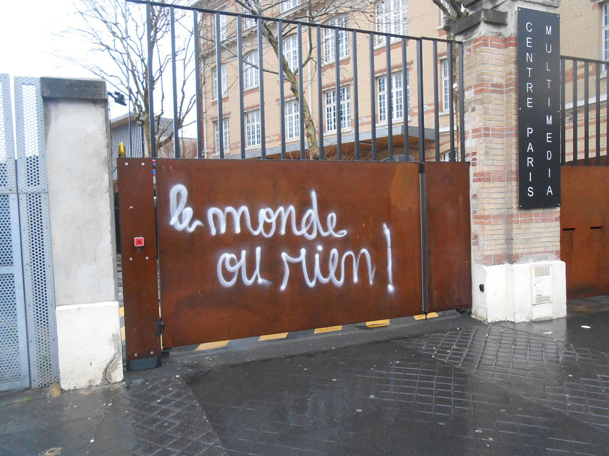 Mais revenons au cas français. Depuis le début du siècle, la France a été le théâtre comme au Chili, au Soudan ou en Iran et dans tant d’autres pays, d’une montée en puissance progressive du mouvement réel. 2005 : révolte des banlieues pour Zyed et Bouna, 2006 : mouvement contre le CPE ; 2008-2018 : lutte contre l’aéroport de Notre-Dame-des-Landes et mouvement des ZAD ; 2016 : mouvement contre la loi travail ; 2016 (mort d’Adama Traoré) ; 2017 (viol de Théo) et mouvement contre les violences policières ; 2017 : mouvement #MeToo ; 2017 : collages contre les féminicides et bien d’autres encore. Pendant une grosse dizaine d’années, se sont succédé une série de mouvements de contestation de plus en plus inventifs et subversifs contre l’ordre établi.