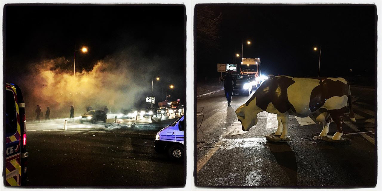 Un fait central : les manifestants font usage d’une pléthore de tactiques, jamais vues auparavant en France. Les rocades circulaires de Nantes, Bordeaux, Rennes sont bloquées. Une opération péage gratuit se tient aux environ de Nice. En Moselle, l’A4 est occupée en fin de matinée. Aux environs de 17h, les CRS, alors qu’ils chargent, la presse locale relate qu’ils auraient été accueillis par quelques cocktails molotov. Les manifestants n’hésitent pas non plus à enflammer les voies quand ils se replient. À Dijon, les gilets jaunes désertent la périphérie où la préfecture voulait les contenir pour se répandre dans le centre-ville. À Bar le Duc, on ne bloque pas complètement, mais on préfère forcer les automobilistes à la lenteur, le temps d’entamer un dialogue et d’expliquer. À Marseille, on bloque en centre-ville et on coupe l’accès à l’aéroport Marseille-Provence. À Troyes et Quimper, les plus intrépides tentent de prendre la préfecture. À Paris, des VTC en lutte bloquent les quais de Bercy puis le carrefour de la Bastille. Au même moment, le périphérique est bloqué dans les deux sens tandis que, au niveau de la Porte de la Chapelle, une compagnie de CRS arrive : sans qu’un seul n’ait eu le temps de descendre de son fourgon, le cortège motorisé s’engage vers l’A1 pour bloquer à nouveau l’axe autoroutier principal qui relie le plus grand aéroport de France à la capitale. L’après-midi, une foule de plus de mille personnes déborde le dispositif policier pendant quelques heures sur les Champs Elysées. La manifestation sera stoppée à seulement quelques dizaines de mètres de la porte principale du Palais présidentiel. A plusieurs milliers de kilomètres, les événements résonnent aussi, comme à La Réunion, où l’on dénombre une quarantaine de points de blocages. Un certain sentiment de révolte a donc fait tache d’huile.