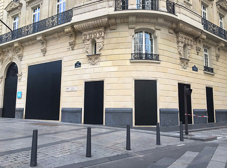 devant des bijouteries de luxe protégées par des vitres en verres caméras hommes armés et anti-vols high-tech