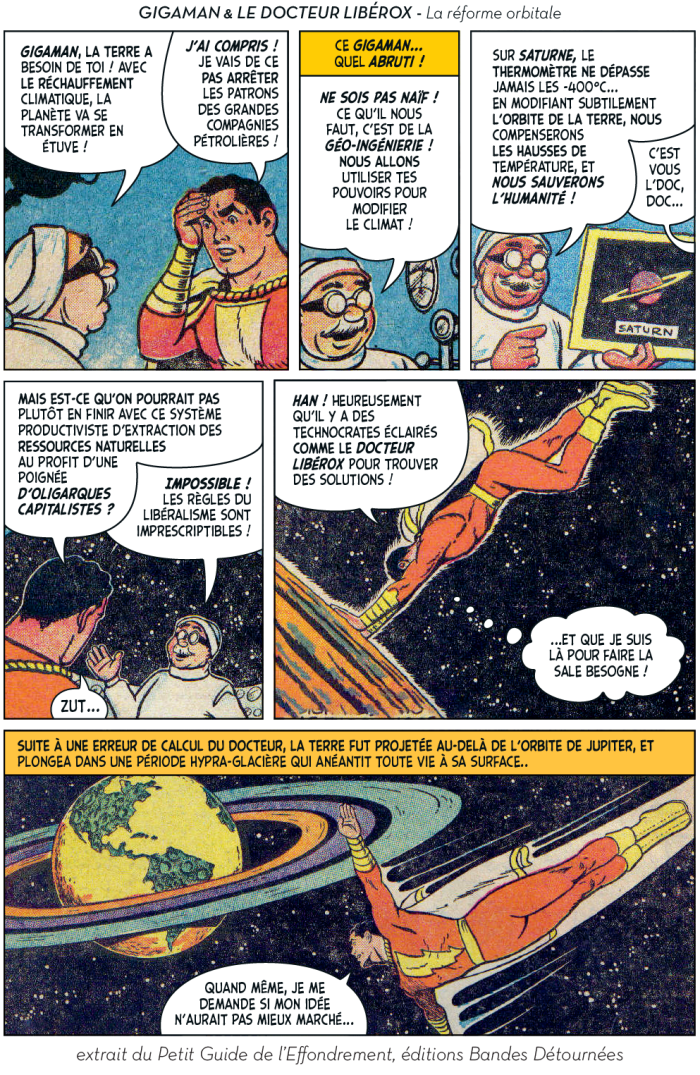 Plutôt que d’angoisser devant leur écran ou de préparer des conserves dans un bunker à la campagne, deux auteurs de BD et un faux graphiste se sont mis en tête de rire de l’effondrement.