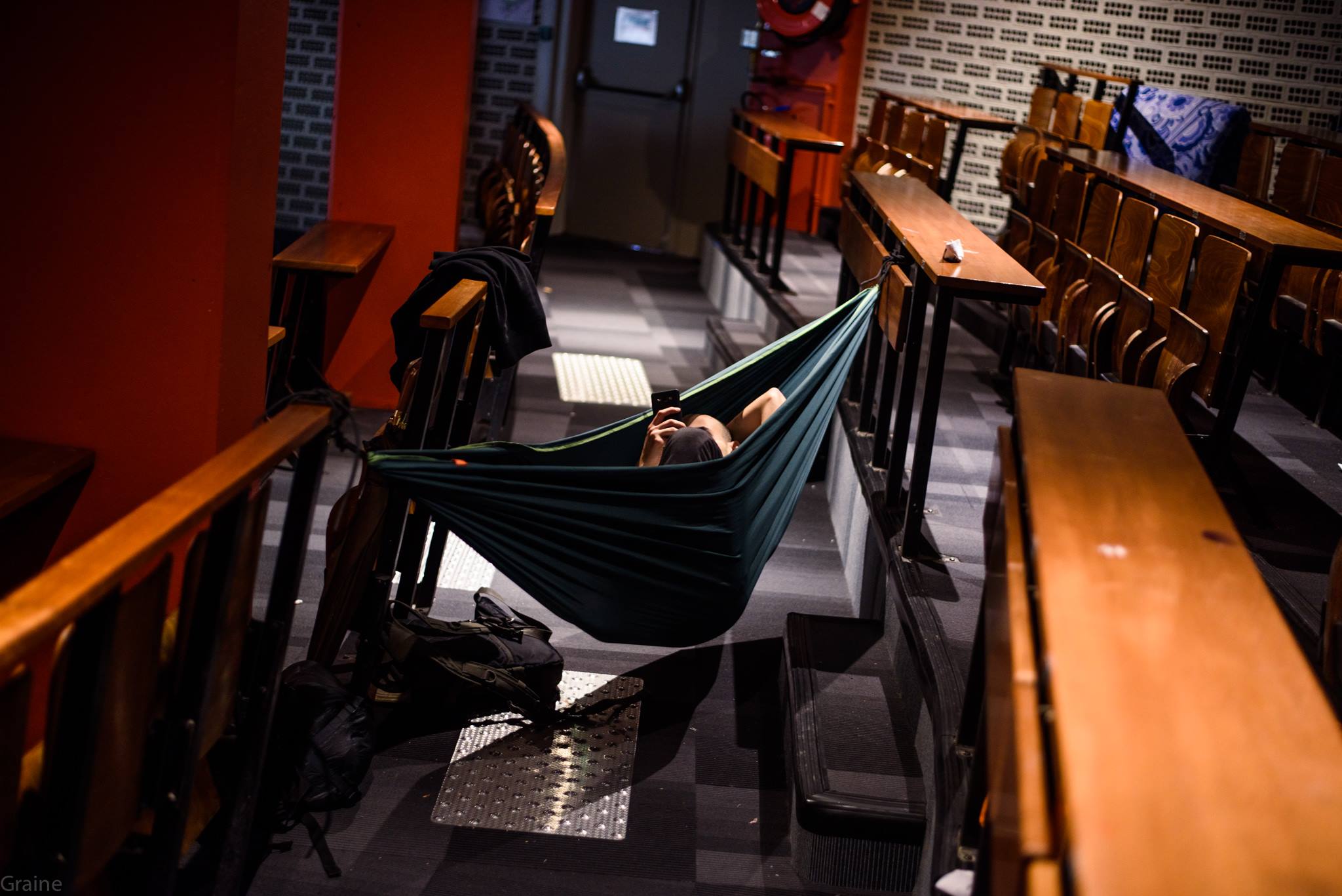 Tout comme la nourriture : récupération de supermarchés – ardue et peu rentable à Paris intra-muros – achats des occupant.e.s, dons des sympathisants, une pincée de chourre. La cuisine était dans la salle de repos, les trappes des distributeurs de bouffe réaffectées à la fonction de frigo. Il y avait beaucoup de provisions de toutes sortes. Si l’alimentation de la journée était plus autonome, les repas du soir étaient faits collectivement par des volontaires. De grandes marmites de légumes et de pâtes chauffées sur des plaques de cuisson défectueuses – mais délicieuses parce que gratuites – sans parler des coupures de courants, régulières.