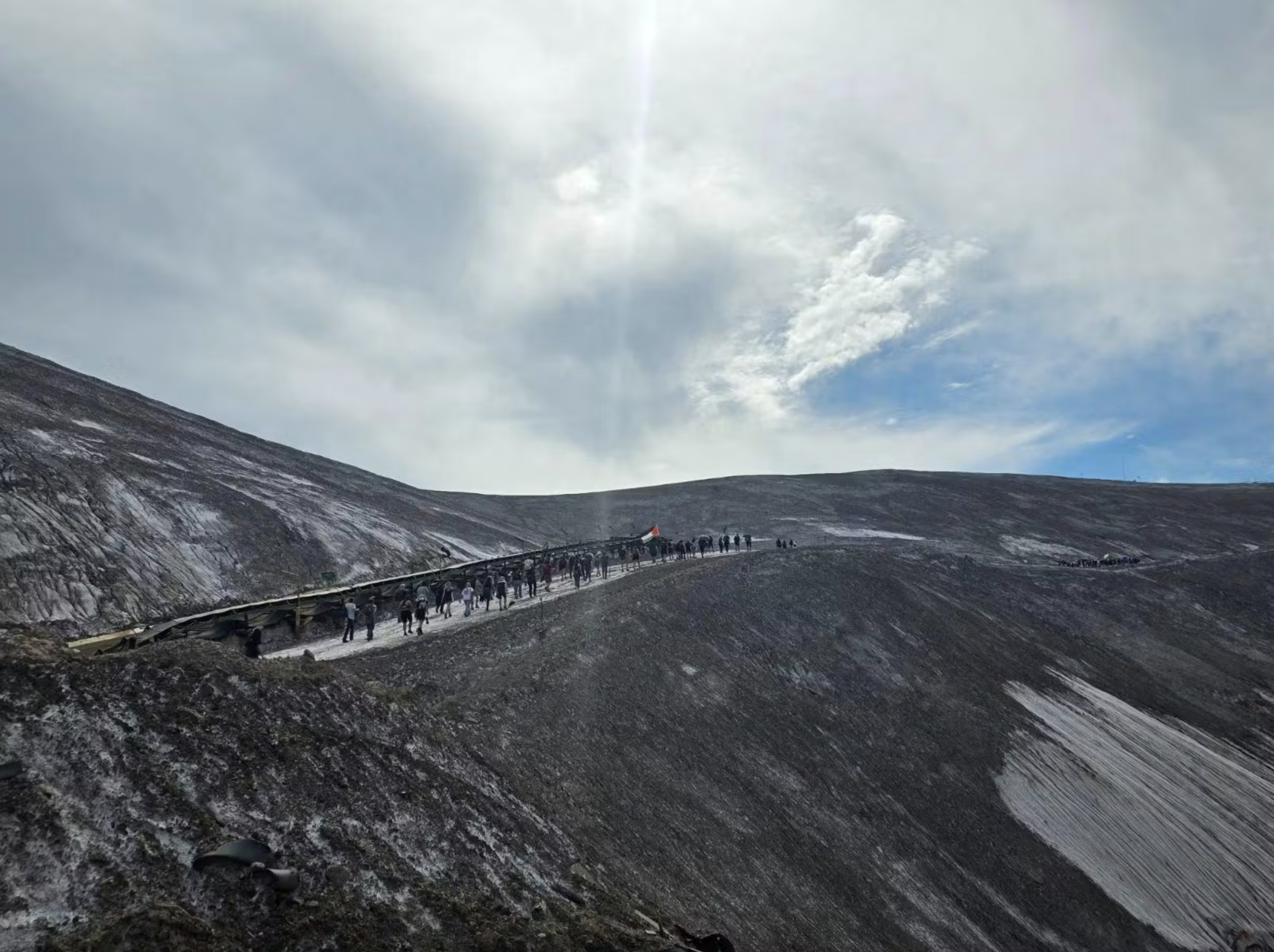 Les 18 et 19 avril, à l’appel des Revoltes de la terra, 4000 personnes ont participé au week-end contre Israël Chemicals. 600 ont bloqué et sérieusement endommagé les voies qui permettent d’habitude d’acheminer plusieurs fois par jour les trains remplis de potasse, d’Israel Chemicals, entreprise dont les profits appuient directement l’armée israelienne. Les cousines catalanes des Soulèvements de la terre se sont déployées de part et d’autre d’un camp monté en 24 heures pour l’occasion. Pendant le désarmement du chemin de fer, un cortège d’un millier de personnes a parcouru 20 kilomètres (!) à pied pour occuper la montagne de déchets produite par des décennies d’extractivisme, marquant de leurs corps un immense PROU SAL (stop sel). Une troisième « colonne » a réalisé une opération escargot conjointe sur les autoroutes C16 et C25. Un récit en photo de la colonne internationaliste des Soulèvements de la terre.